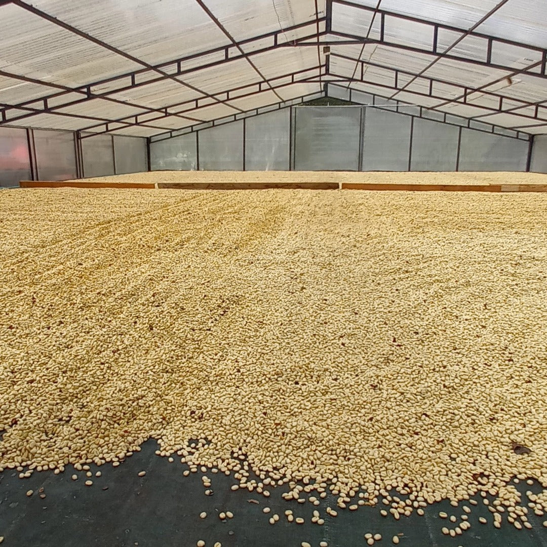 After harvesting, the coffee cherries undergo 14-16hours of fermentation, washed, then sun-dried. Sun dried for 15-20 days. This produces a lot of sweetness, but also brings out some of the fruitier notes of this coffee. There's almost a slight citrus note. That's why we roasted this one on the medium spectrum - to pull out as much of those nuances as possible. On the palette, it's nice and buttery with a very clean finish.