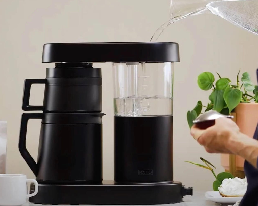 1) Figure out ratio - we like a 16:1 ratio for most drippers. The easiest way is to multiply your coffee dose by 15 to get your total grams of water. For 50 g coffee, weigh out 800 g of water and add to reservoir of the drip machine. You can also work backwards - weigh your "full pot" of water, divide by 16, and that will determine how much coffee to add.