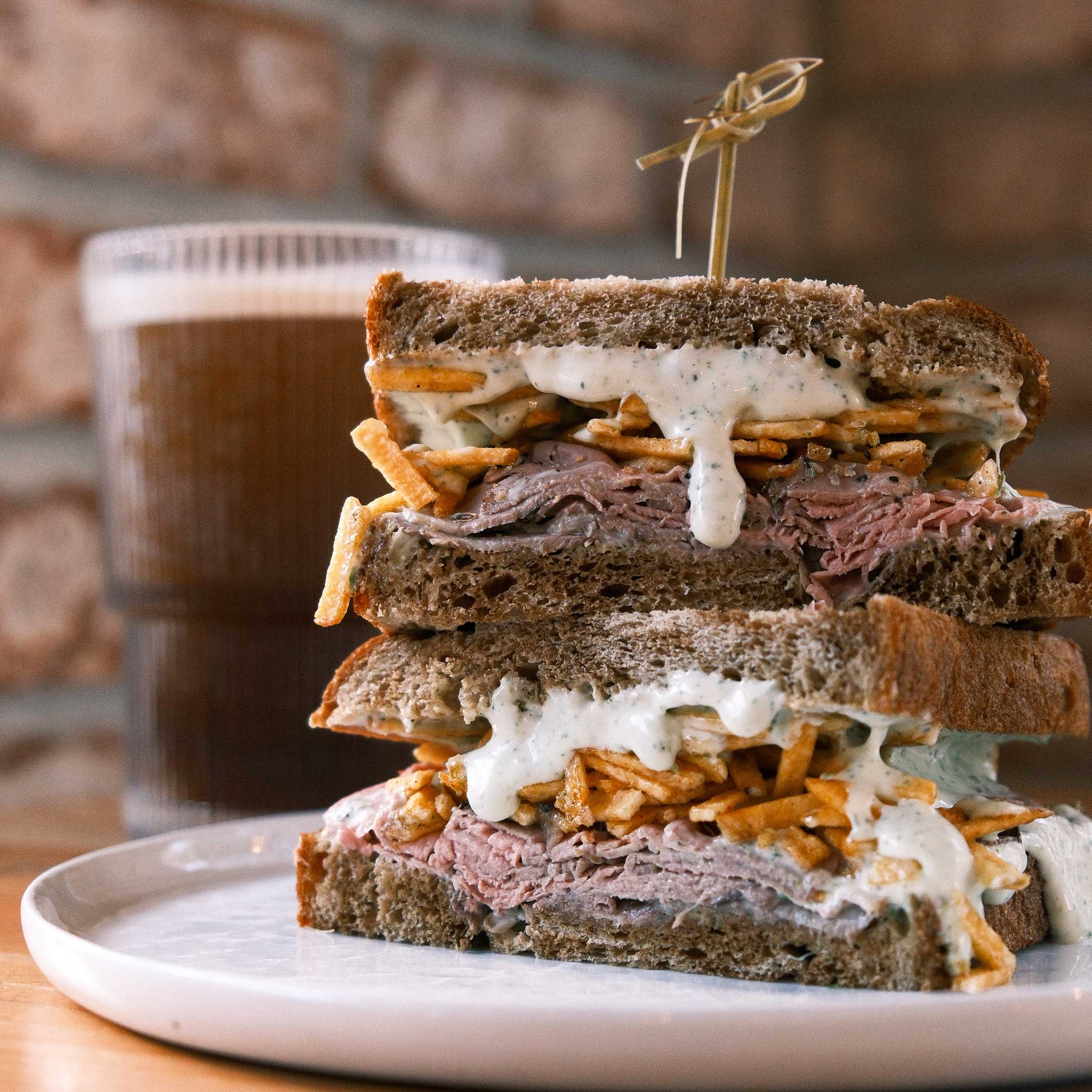We offer a full range of hot and cold espresso drinks, filter coffee, matcha, teas, alternative mylks, baked goods and a curated selection of savoury sandwiches and breakfast items.