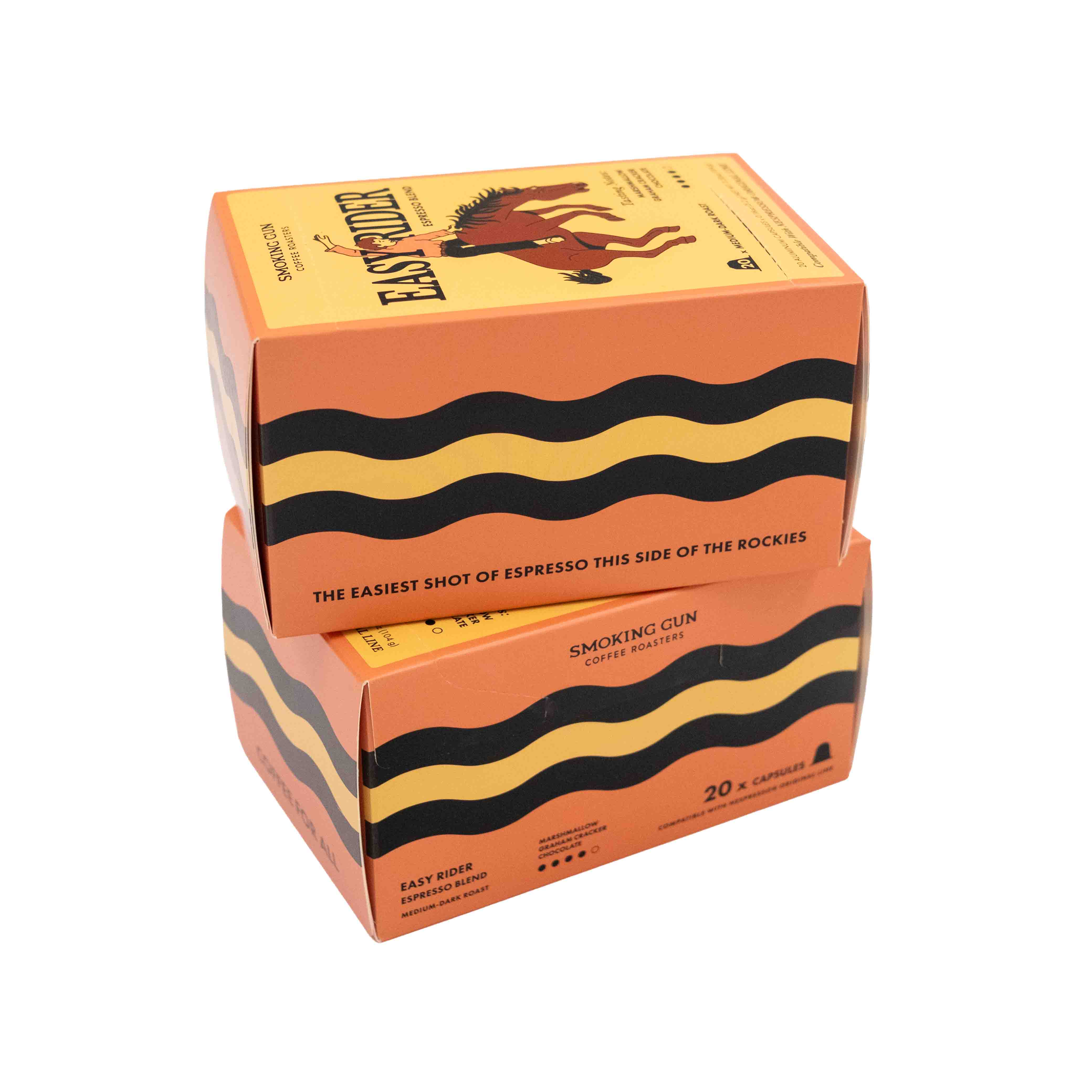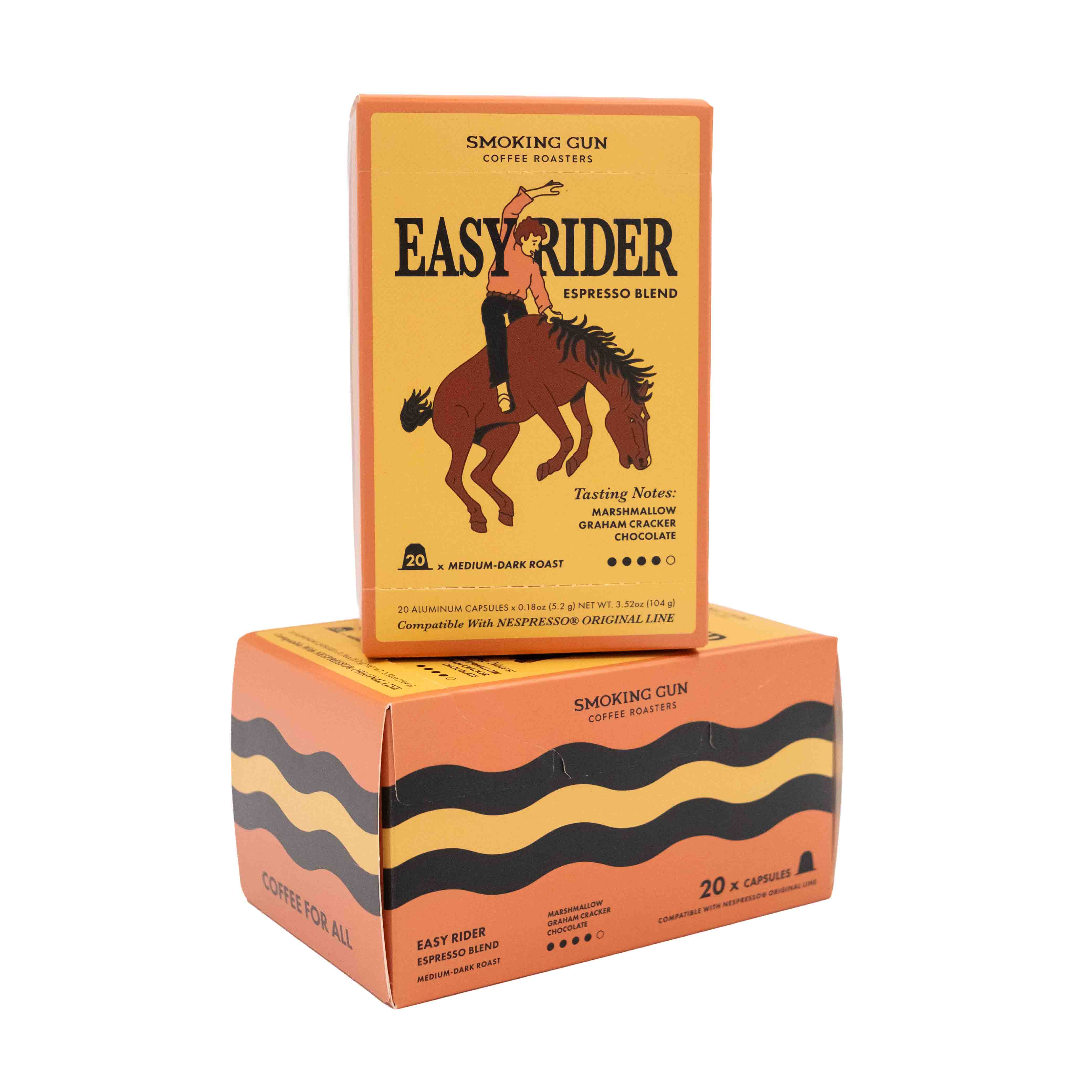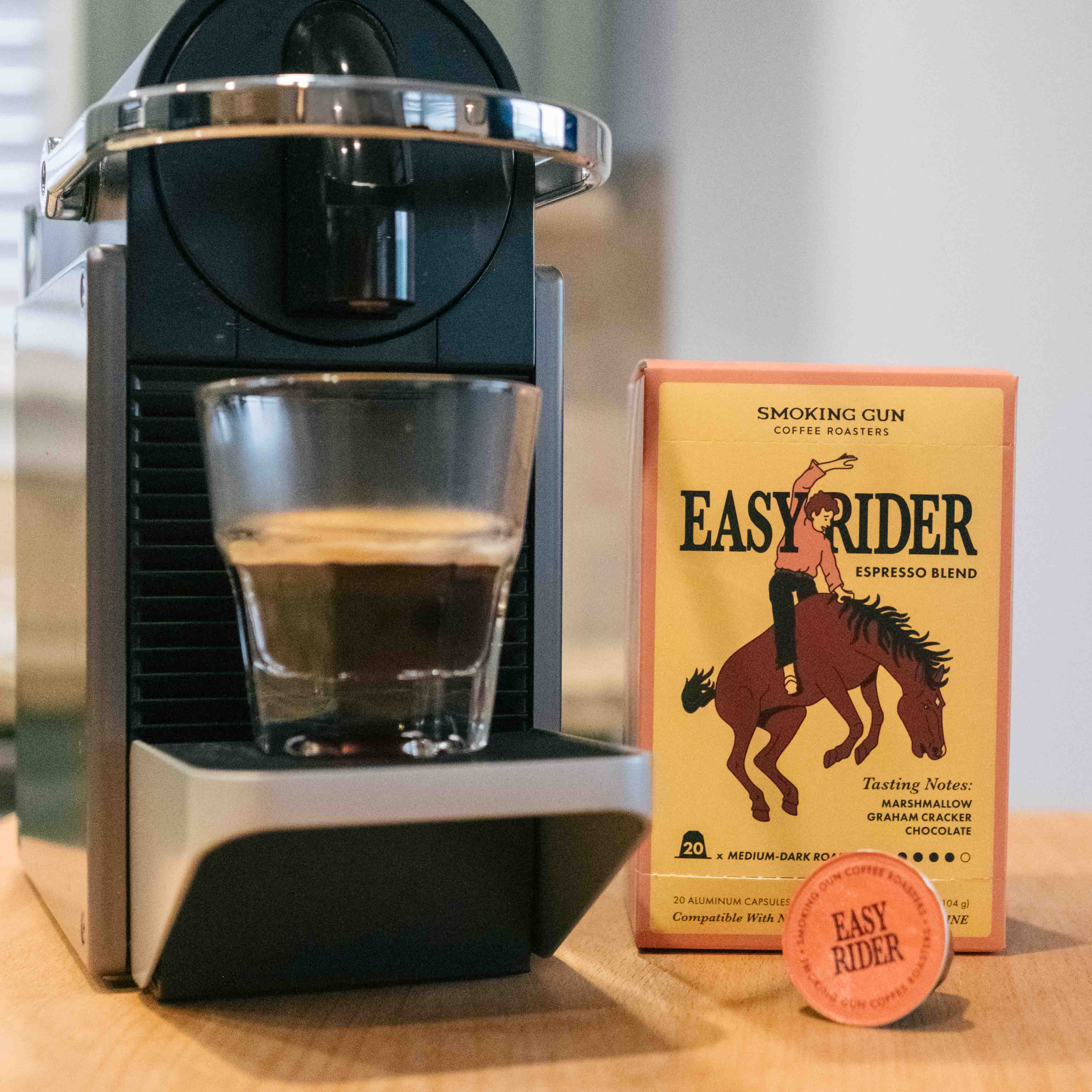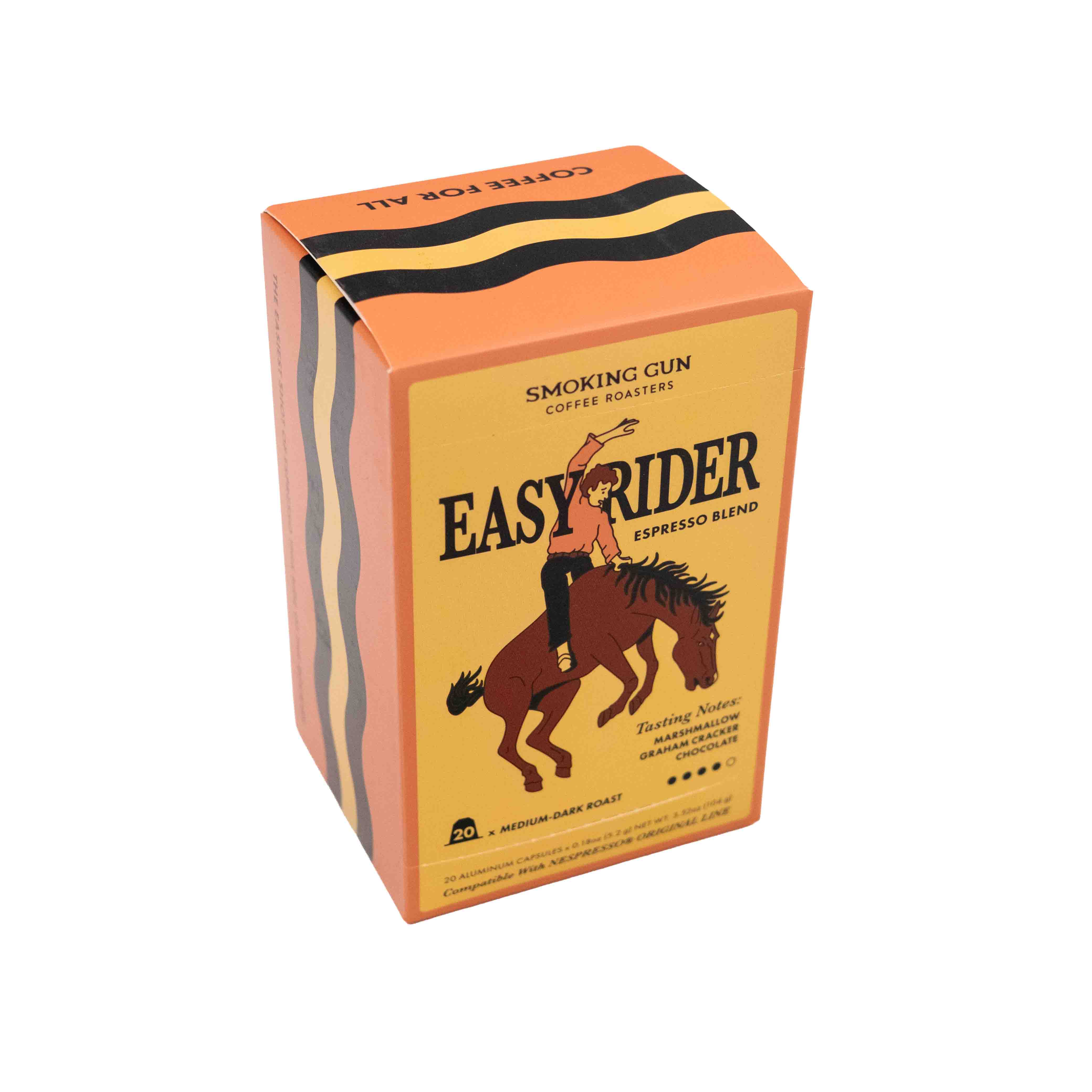 Easy Rider blend is rich, chocolatey and nutty - the perfect profile for a robust Nespresso®️ beverage with a beautiful crema on top. We developed this profile with a blend of beans from Colombia, Brazil and Ethiopia.