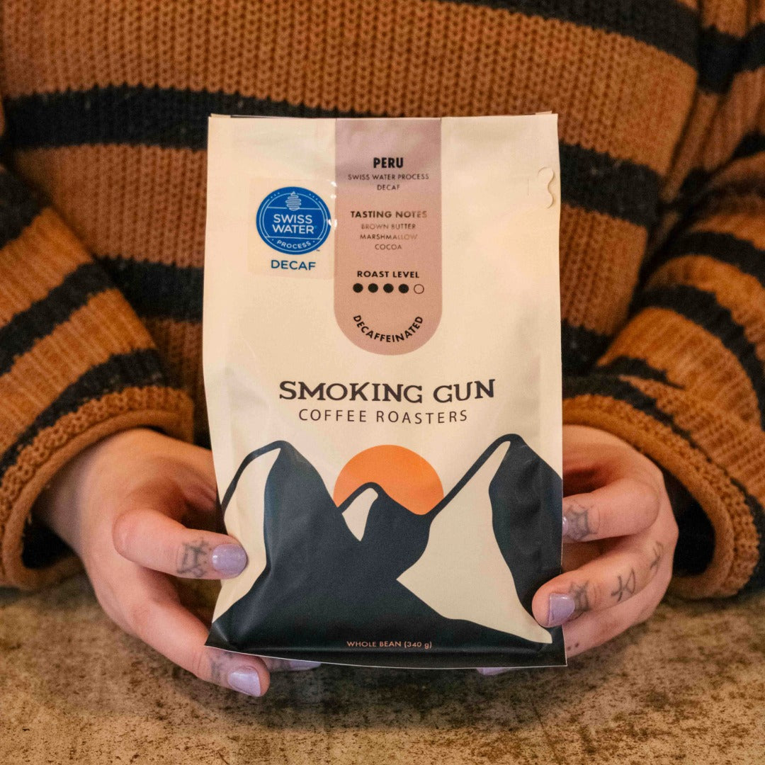 This is our first time offering this specific decaf and we are loving it. Its origin is Peru, but it was decaffeinated in Delta, B.C. at the Swiss Water®️ Headquarters. It's 100% chemical-free and 99.7% caffeine-free.